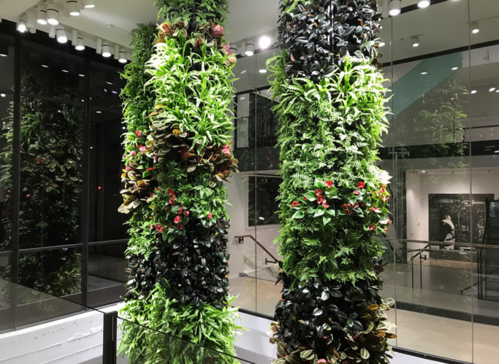 Zelené a květinové sloupy