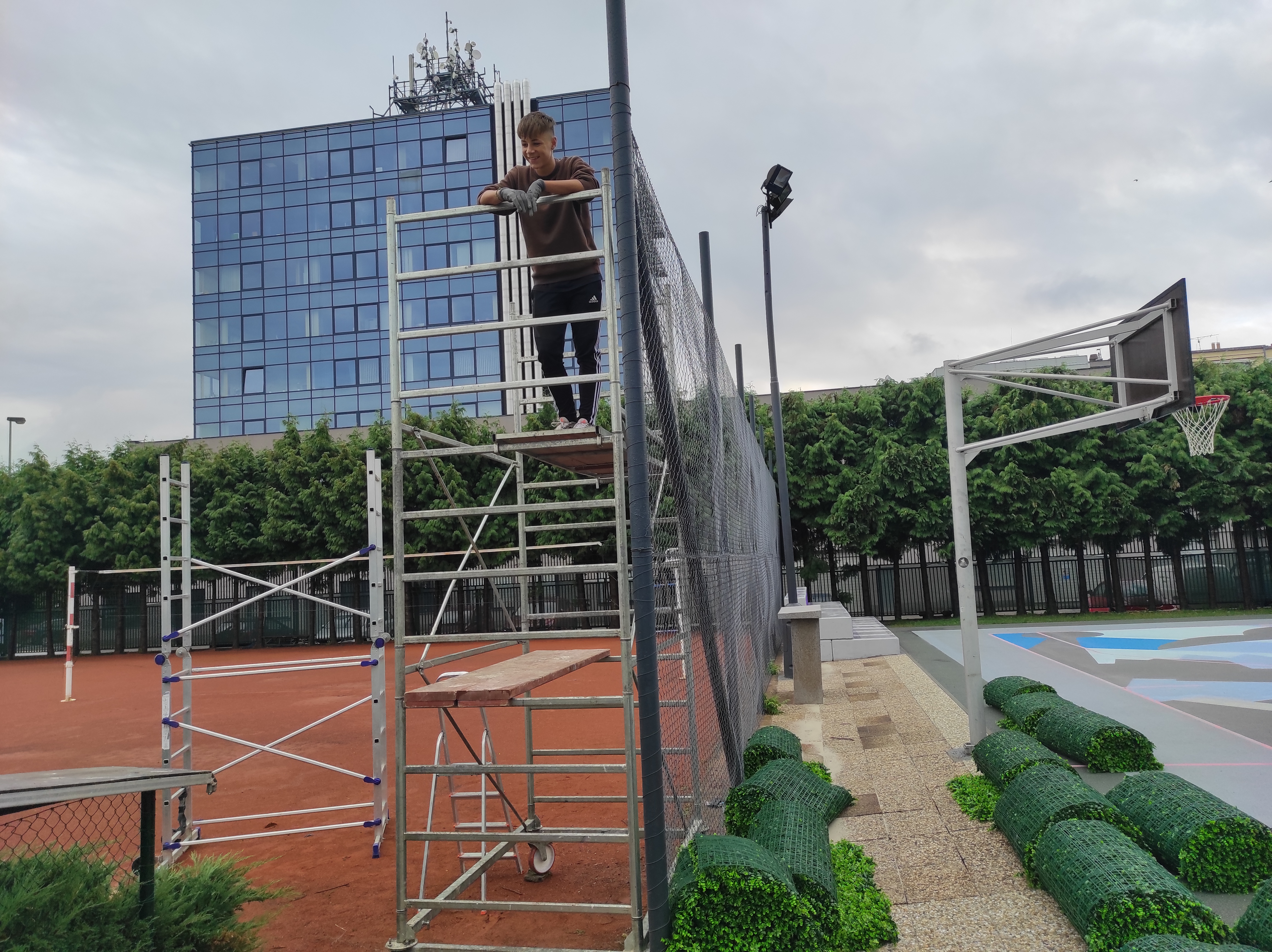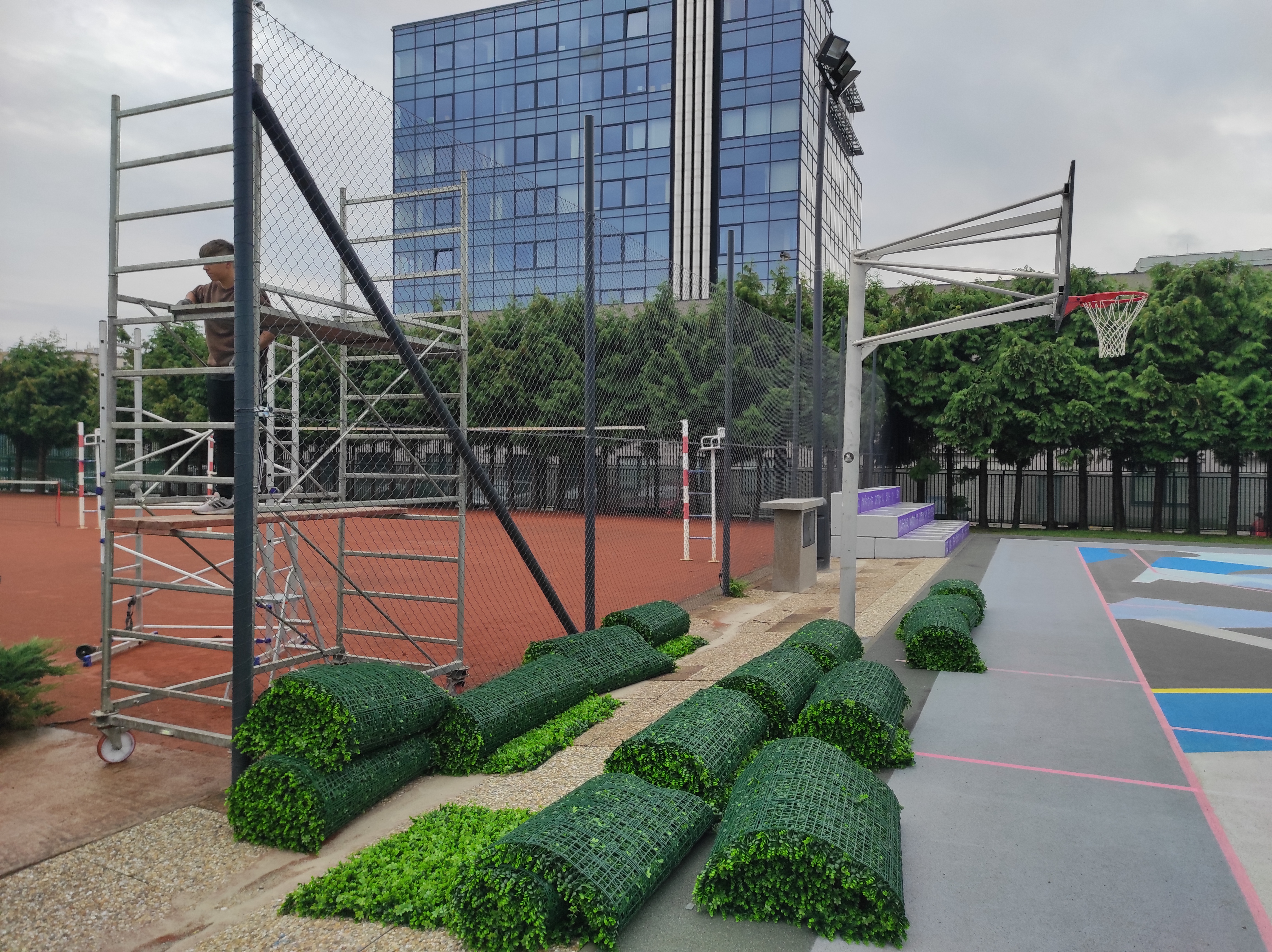 Práce nás přivedla do žižkovského areál Pražačka. Instalovali jsme tam poměrně velkou "zelenou" zástěnu mezi hřišti.