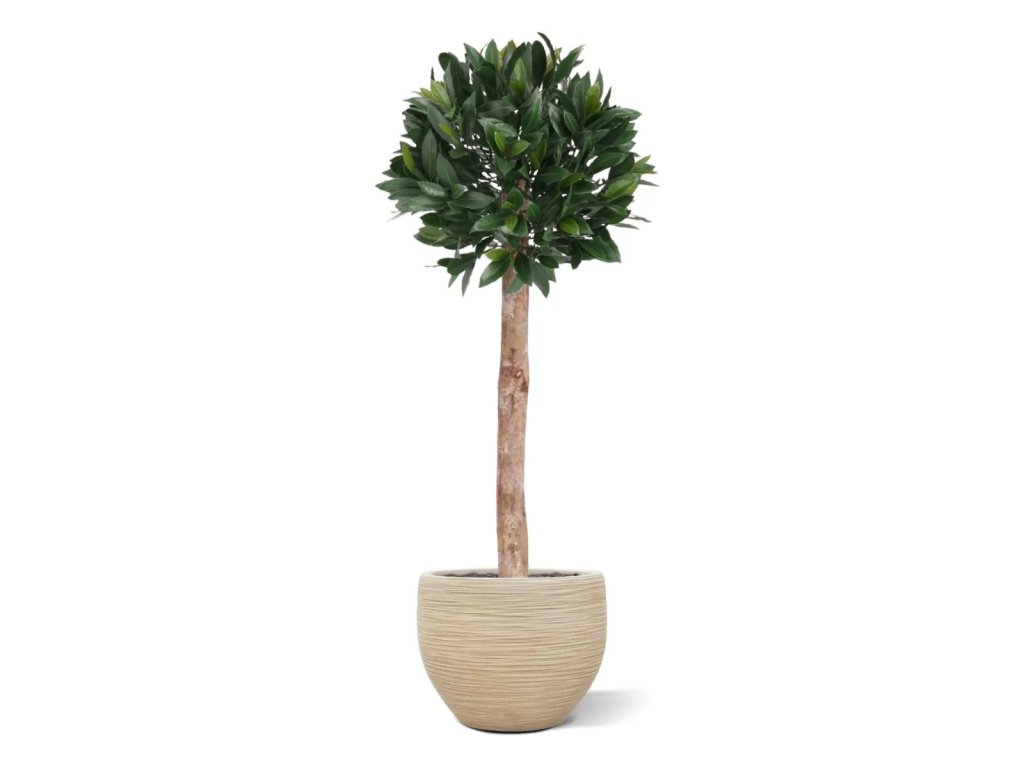 Umělý kulovitý vavřín na přírodním kmínku. Výška 120cm, průměr koule 40cm. Vhodný do exteriéru díky materiálu s UV ochranou.