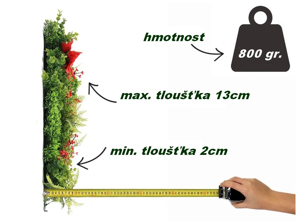 Panel z mixu rostlin vhodný i na vytvoření zelené stěny nebo vertikální zahrady.
