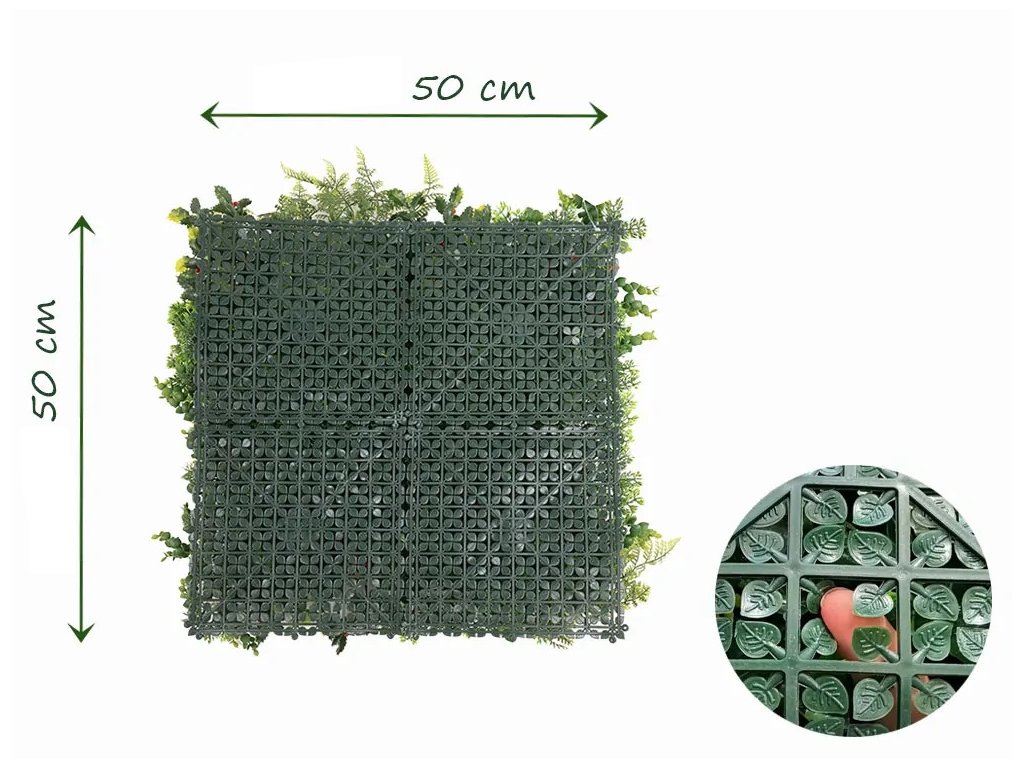 Díky různému rozložení rostlin na jednotlivých panelech lze vytvářet zajímavé a přirozené kombinace