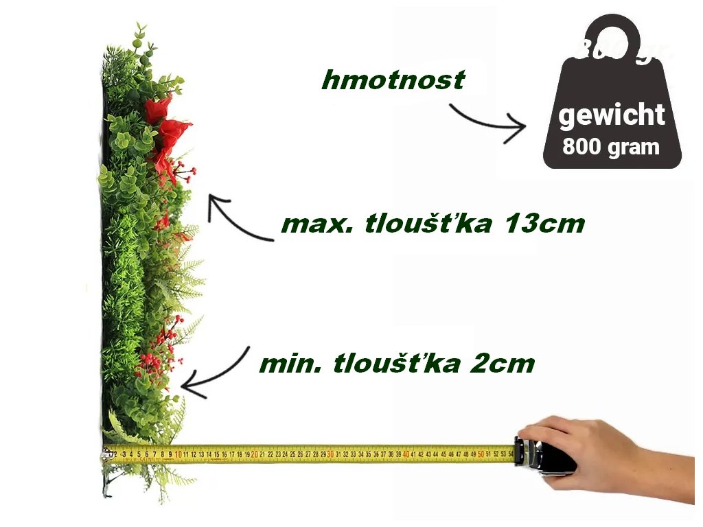 Panel z mixu rostlin vhodný i na vytvoření zelené stěny nebo vertikální zahrady.