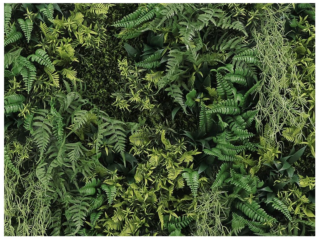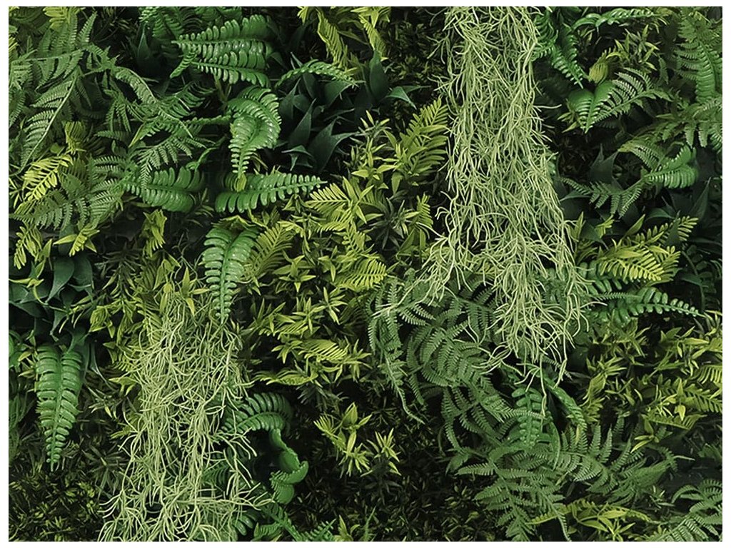 Zeleň je převážně tvořena směsí kapradin, doplněna o španělský mech.
