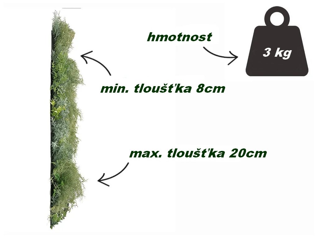 Tuto umělou zelenou stěnu lze použít pro vnitřní i venkovní aplikace.